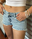 Shortcito de jean súper canchero, con leve desflecado, para lucirlo . Indispensable para el verano.