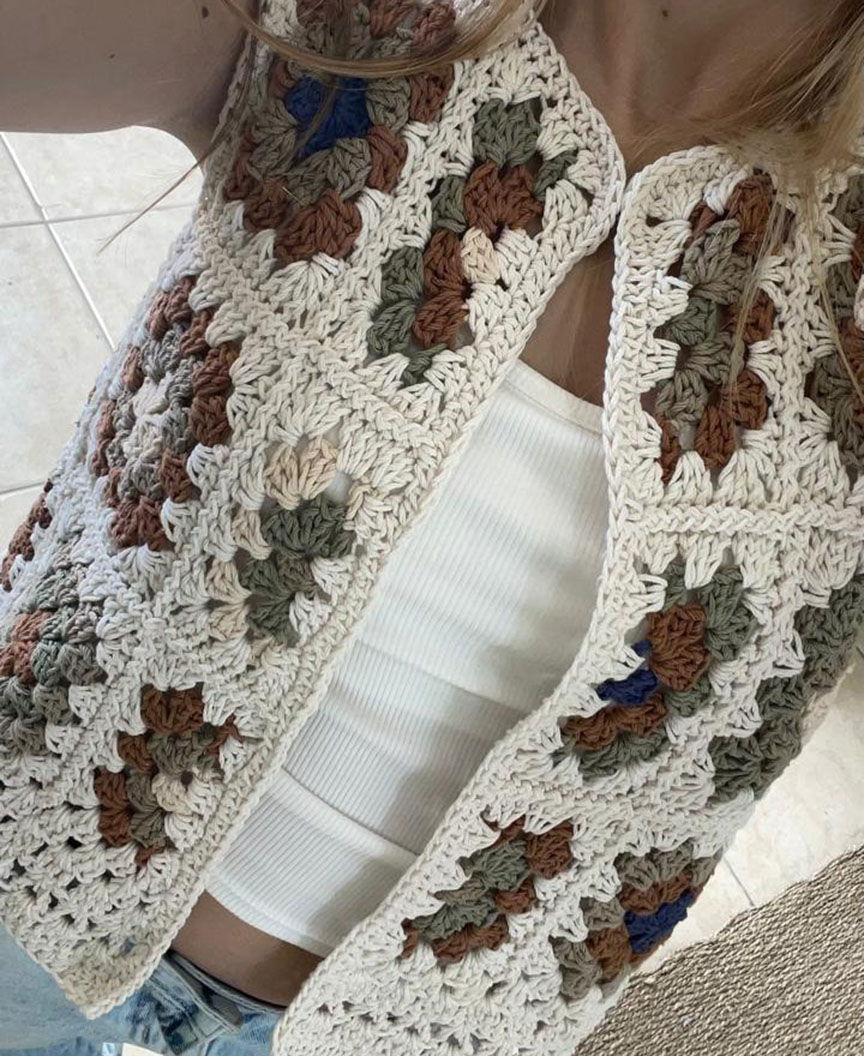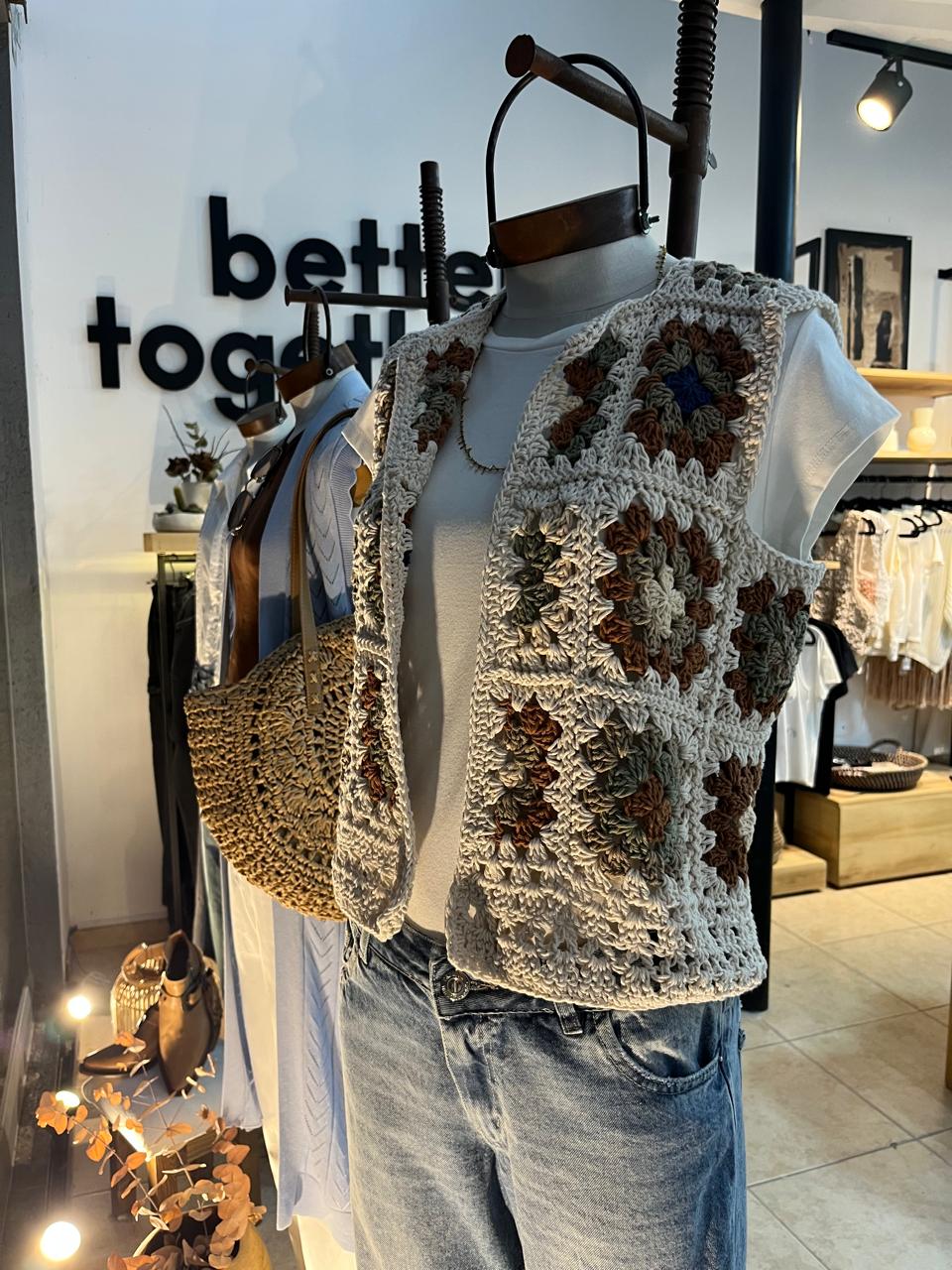 Chaleco tejido a mano en crochet. Hilo de puro algodón. Es fresco, con una caída hermosa y en colores mediterráneos.