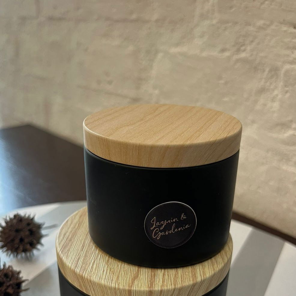 CONTENEDOR: Contenedor negro mate con tapa metálica efecto madera