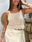 Musculosa artesanal tejida a mano en hilo premium con detalles de sutiles lentejuelas doradas en la trama.